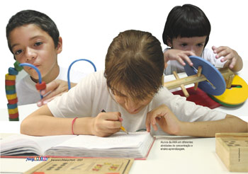 - As atividades de trabalho independente devem estar disponíveis ao lado das áreas de trabalho (sempre à esquerda). Para isso, muitas vezes, coloca-se uma pequena estante ou mesa mais estreita aonde possam ser colocadas as atividades que vão ser executadas pelo aluno;