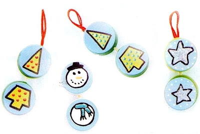A ideia principal é pintar as tampinhas mas você também pode colar recortes de papel ou reciclar cartões antigos de natal, fica perfeito também.