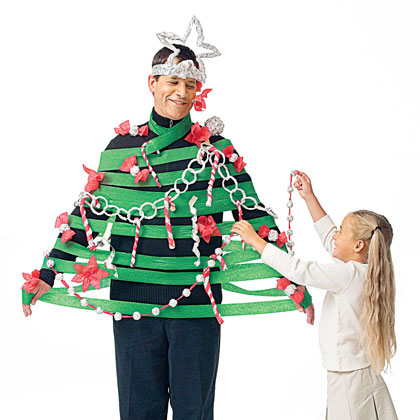 Se você vai apresentar alguma peça de natal ou cantata que tenha árvore no elenco... improvise uma árvore bem original, decorando o próprio aluno com esta idéia de fantasia.