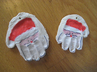 A ideia de fazer o carimbo das mãozinhas e depois pintar o papai noel ficou fofa!